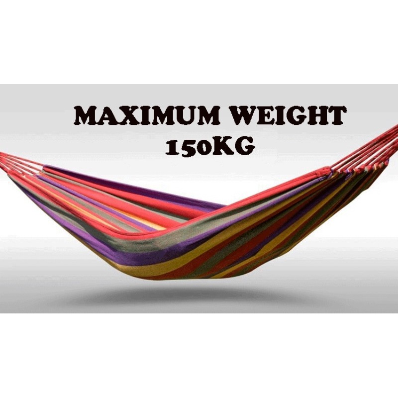 Double hammock swing bed with hanging kit tree camping chair 150 kgs cream.