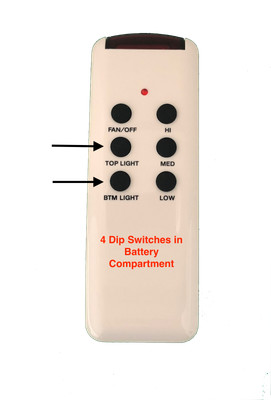 Please note some of the older fans require that you set the number 5 dip switch in the off position on both the fan and remote for it to work!